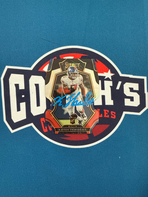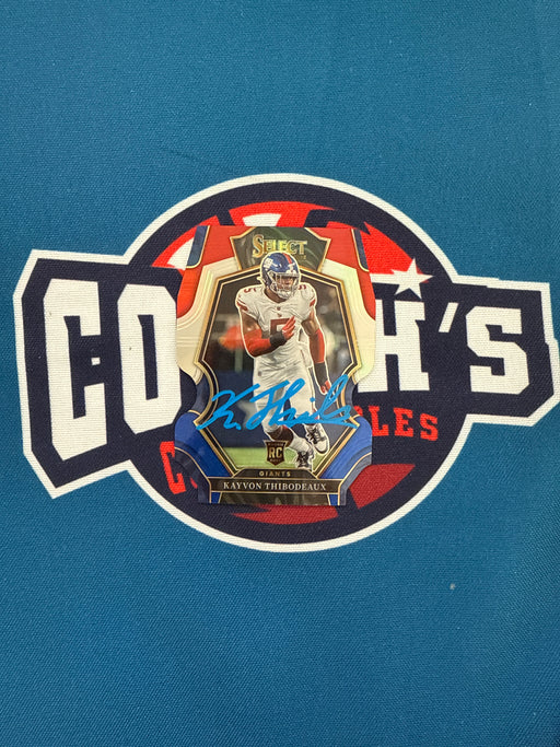 This 2022 Panini Select Die Cut Rookie card has been personally hand-signed by Defensive Star Kayvon Thibodeaux in blue paint. This item was signed...