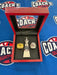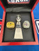 Amazing Collectors item of the Two Baltimore Ravens Replica Super Bowl Rings with incredible display box that holds all rings! Amazing quality rings made of heavy duty alloy, not the cheap plastic replicas! Mini Lombardi Trophy also made of Metal. Approximately Size 11.
