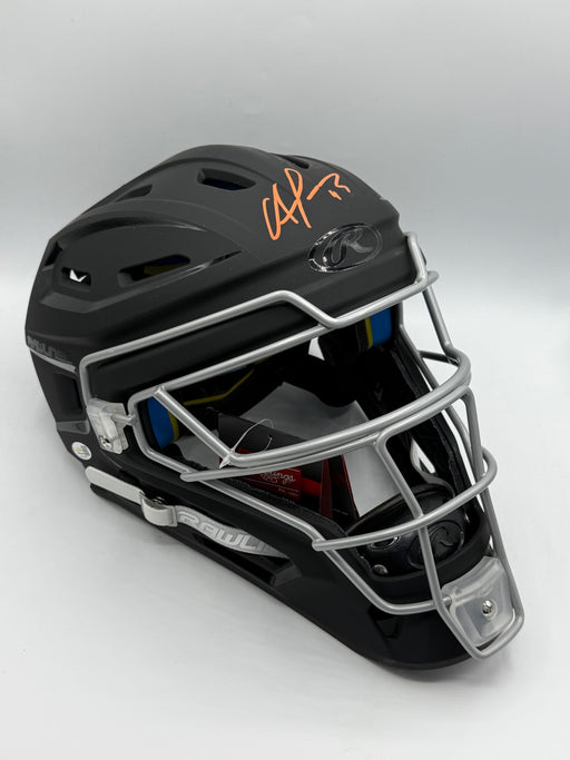 This Rawlings Authentic Adult Full Size Catchers Helmet has been personally hand-signed by NY Mets Young Star Catcher Francisco Alvarez in Orange p...