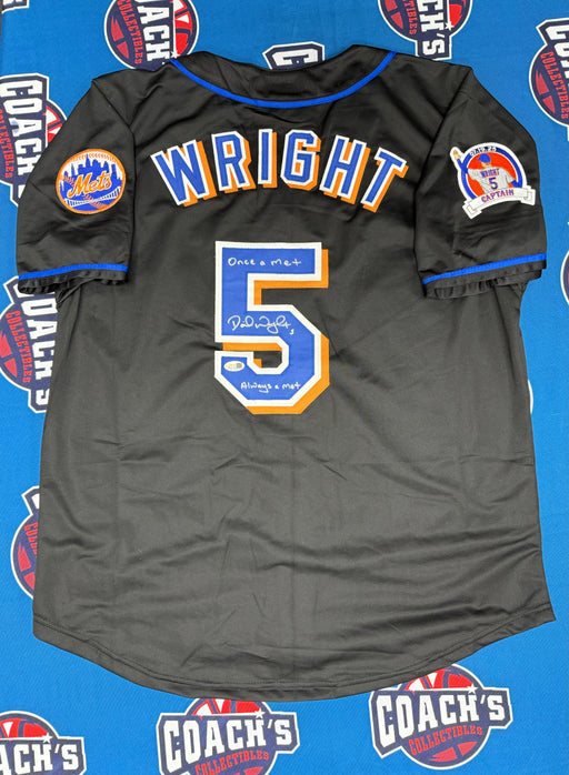 This NY Mets Black CUSTOM Jersey has been personally hand-signed by Mets Legend David Wright. David has added the inscription "Once a Met, Always a...