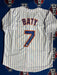 This CUSTOM NY Mets Pinstripe Jersey has been personally hand-signed by NY Mets young star Brett Baty.