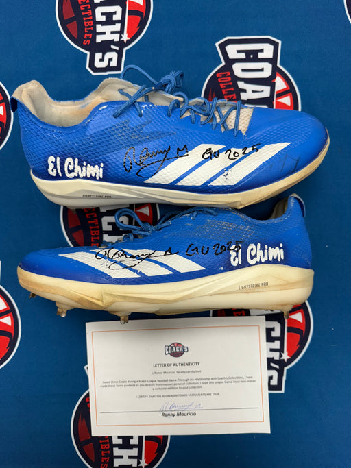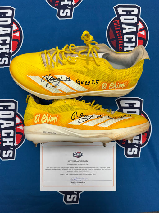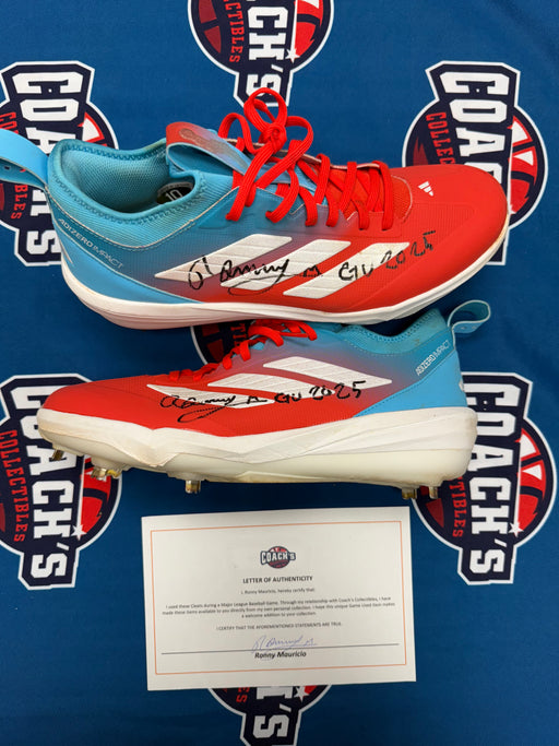 This pair of GAME USED Adidas Cleats have been personally hand-signed by Mets Young Star Ronny Mauricio with the inscription "GU 2025". You will re...