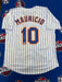 This CUSTOM NY Mets Pinstripe Jersey has been personally hand-signed by NY Mets young star Ronny Mauricio.