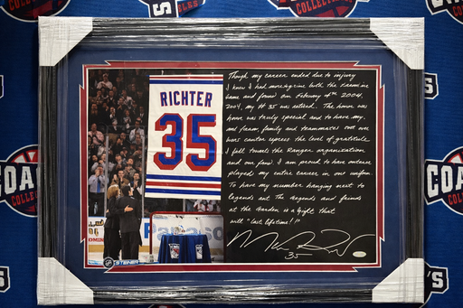 This 16x20 photo has been personally hand-signed by NY Rangers Legend & 1994 Stanley Cup Champion Mike Richter. Mike has also handwritten this ...