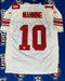 This Officially Licensed Reebok New York Giants White Road Jersey has been personally hand-signed by Future Hall of Famer, Eli Manning. Eli has added the inscriptions "SB XLII, XLVI MVP" & "Last to Wear #10" along side his autograph on this piece!