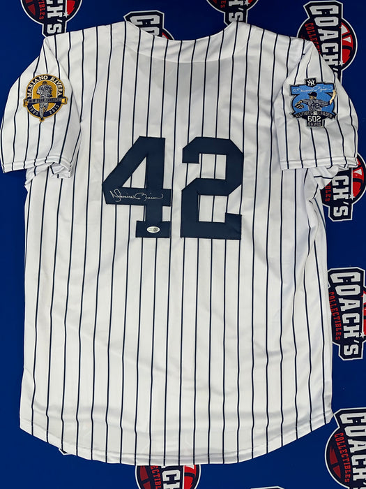 Mariano Rivera Autographed NY Yankees CUSTOM Pinstripe Jersey with Commemorative Patches (JSA)
